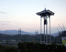 今時珍しい半鐘です。奥に見えるのは、東名高速道路の橋脚です。