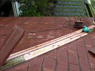 台風で吹き飛ばされた車庫の棟の修理をしました。