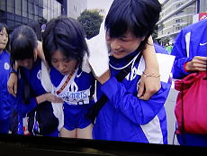 娘がテレビに映ったらしいというメールが娘からきたので、家に帰ってハードディスクへの録画を確認したら、ゴール直後の様子が映っていました。選手を抱きかかえ、「頑張った 頑張った」と声をかけていました。